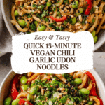 Keywords: vegan chili garlic noodles, quick udon noodles recipe, vegan Asian noodles, spicy garlic noodles, vegan dinner, 15-minute noodles, chili garlic oil
