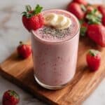 A simple, nutrient-packed 3-ingredient strawberry and chia smoothie that combines fresh strawberries, creamy Greek yogurt, and fiber-rich chia seeds. Perfect for a quick breakfast or healthy snack.