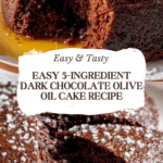 A rich and moist 5-ingredient dark chocolate olive oil cake that’s simple to make and perfect for chocolate lovers. This cake combines high-quality dark chocolate with extra virgin olive oil for a unique, tender texture and deep flavor, requiring minimal ingredients and effort.