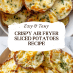 Crispy and flavorful air fryer sliced potatoes seasoned with garlic, paprika, and herbs, perfect as a quick snack or side dish. These golden slices are easy to prepare, using simple ingredients and the air frying method to achieve a delicious texture without excess oil.