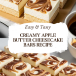 Apple Butter Cheesecake Bars are a luscious treat combining creamy cheesecake with the warm, spiced flavor of apple butter. Perfect for a cozy dessert, these bars have a buttery graham cracker crust and a fluffy, tangy filling swirled with apple butter. They make a delightful sweet bite for any occasion.