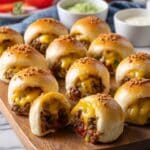 Keywords: bacon cheeseburger bombs, appetizer, finger food, party snacks, baked biscuit bombs, cheesy beef bombs