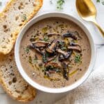 Keywords: mushroom soup, creamy mushroom soup, easy mushroom soup, no cream mushroom soup, vegetarian soup, mushroom recipes, comforting soup