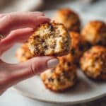 Keywords: Bisquick sausage balls, sausage balls recipe, appetizer, party food, easy snack, ground sausage appetizer, cheddar cheese snack