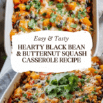 Keywords: black bean casserole, butternut squash casserole, vegetarian casserole, healthy dinner, baked casserole, comforting meal, protein-rich vegetarian, veggie main dish
