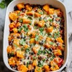 Keywords: black bean casserole, butternut squash casserole, vegetarian casserole, healthy dinner, baked casserole, comforting meal, protein-rich vegetarian, veggie main dish