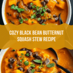 A hearty and flavorful Black Bean Butternut Squash Stew that combines creamy coconut milk with warm spices and tender vegetables. This comforting stew is perfect for a cozy meal and packed with nourishing ingredients like black beans, butternut squash, and fresh herbs.