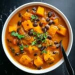 A hearty and flavorful Black Bean Butternut Squash Stew that combines creamy coconut milk with warm spices and tender vegetables. This comforting stew is perfect for a cozy meal and packed with nourishing ingredients like black beans, butternut squash, and fresh herbs.