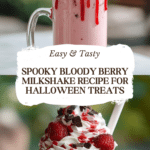 A decadent and visually striking Bloody Berry Milkshake combining creamy vanilla ice cream, juicy mixed berries, and a dramatic strawberry syrup drizzle that creates a spooky ‘bloody’ effect. Perfect for parties, celebrations, or a fun treat.
