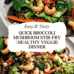 Keywords: broccoli mushroom stir fry, vegetarian stir fry, quick vegetable stir fry, healthy Asian stir fry, easy dinner recipe, vegan friendly stir fry