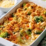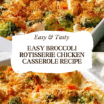 This Broccoli Rotisserie Chicken Casserole is a comforting and easy one-dish meal combining shredded rotisserie chicken, tender broccoli, and fluffy rice in a creamy Greek yogurt and cream of chicken soup sauce. Topped with cheddar cheese and a crispy buttery whole wheat cracker crust, it bakes into a satisfying, kid-friendly dinner perfect for busy weeknights or meal prep.
