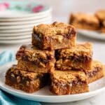- Cool and serve: Let the blondies cool completely in the pan before lifting out with the parchment paper and cutting into 16 bars for serving.