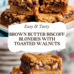 Keywords: Brown Butter Blondies, Biscoff Blondies, Walnut Blondies, Biscoff Cookie Spread Dessert, Chewy Blondies, Brown Butter Dessert
