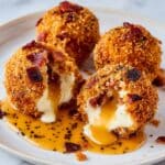 These Buffalo Chicken Bacon Mozzarella Bombs are a perfect game day snack, combining spicy buffalo-flavored ground chicken, crispy bacon, and gooey mozzarella cheese. Each bite delivers a crispy golden crust with a melty cheesy center and the savory kick of buffalo sauce, making them a crowd-pleasing appetizer or party treat.