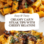 A flavorful, creamy Cajun steak tips dish served with rigatoni pasta in a rich Parmesan and cheesy sauce. Perfectly seared steak tips are combined with a velvety heavy cream-based sauce infused with garlic, Cajun seasoning, and melted cheeses for a comforting and indulgent dinner.