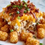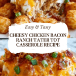 This Chicken Bacon Ranch Tater Tot Casserole is a comforting and flavorful dish perfect for busy weeknights. Packed with tender chicken, crispy bacon, and creamy ranch dressing, it’s topped with golden tater tots and melted cheddar cheese for an irresistible finish.
