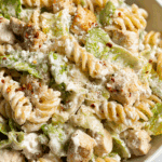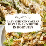 A flavorful and hearty Chicken Caesar Pasta Salad combining tender seasoned chicken, crispy bacon, rotini pasta, fresh romaine, and a creamy Caesar-ranch dressing. This salad is perfect for a quick lunch or a satisfying side dish, offering a delicious fusion of classic Caesar flavors with the convenience of pasta.