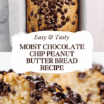 Keywords: chocolate chip peanut butter bread, quick bread, peanut butter bread, chocolate chip loaf, easy baked bread, sweet bread