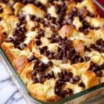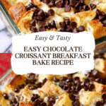Keywords: Chocolate Croissant Breakfast Bake, breakfast casserole, cream cheese breakfast, chocolate chip bake, easy croissant recipes