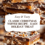 Classic Christmas Toffee is a rich, buttery, and crunchy holiday treat that’s perfect for gifting or enjoying during festive gatherings. Made with a pecan base, caramelized butter and sugar mixture cooked to the hard crack stage, and topped with melted chocolate, chopped nuts, and a hint of sea salt, this toffee offers a delightful blend of sweet and nutty flavors. It’s a medium-difficulty recipe that takes some patience but guarantees a delicious reward for the holiday season.