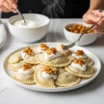- Serve: Serve the vareniki hot, topped with sour cream and crispy fried onions for a delicious finishing touch.