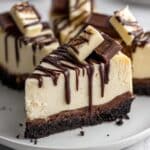 - Serve: Carefully slice the cheesecake into portions and enjoy the creamy, crunchy, and chocolatey flavors blended in this indulgent dessert.