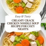 Keywords: Crack Chicken Noodle Soup, creamy chicken soup, bacon chicken soup, ranch chicken soup, easy chicken soup, comforting soup recipe, chicken noodle soup with bacon