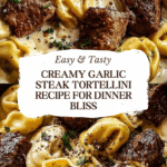 Keywords: garlic steak tortellini, creamy steak pasta, garlic cream sauce, quick dinner recipe, cheesy tortellini, skillet steak dinner