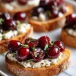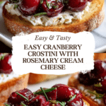 This Cranberry Crostini recipe perfectly combines the tartness of homemade cranberry sauce with a creamy rosemary-infused cheese spread atop crisp toasted baguette slices. It’s an elegant and easy appetizer ideal for holiday gatherings or any festive occasion.