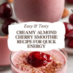 This Creamy Almond Cherry Smoothie is a quick, nutritious, and delicious drink made with almond milk, frozen cherries, almond butter, and optional banana and protein powder for added creaminess and protein. Perfect for a refreshing breakfast or snack, it blends natural sweetness with a creamy texture without any cooking required.