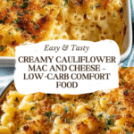Keywords: Cauliflower mac and cheese, healthy mac and cheese, low carb mac and cheese, vegetarian comfort food, cheesy cauliflower casserole