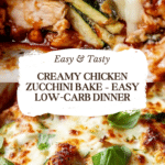 This creamy, cheesy Chicken Zucchini Bake is a cozy, veggie-packed dinner perfect for busy weeknights. Made with tender shredded chicken, fresh zucchinis, cherry tomatoes, and a blend of mozzarella, Parmesan, and cream cheese, it offers a comforting, low-carb, and satisfying meal option.
