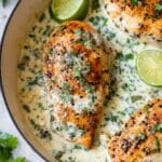 This Creamy Coconut Lime Chicken recipe features tender, pan-seared chicken breasts coated with a flavorful cilantro-flour mixture, cooked in a rich and zesty coconut milk sauce infused with fresh lime juice. Finished in the oven for perfect doneness, this dish offers a delightful balance of creamy, tangy, and savory flavors, garnished with fresh cilantro and green onions for a refreshing touch. It’s a simple yet elegant meal that is perfect for a quick weeknight dinner or a special occasion.