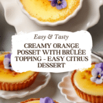 This easy and creamy orange posset recipe with a brûlée topping is a refreshing citrus dessert that’s both visually stunning and delightful in flavor. Made with heavy cream, fresh orange juice, and a caramelized sugar crust, it offers a smooth, zesty treat perfect for any occasion.