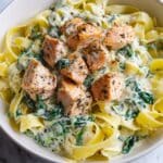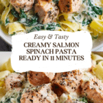 Keywords: creamy salmon pasta, spinach pasta, fettuccine recipe, quick dinner, easy seafood pasta, creamy garlic sauce