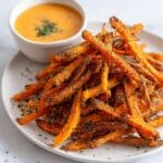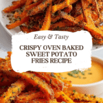 These Crispy Oven Baked Sweet Potato Fries are a healthier alternative to traditional fried fries, featuring a perfect blend of garlic, paprika, and olive oil that creates a flavorful, crispy exterior while keeping the inside tender. Baked at high heat, they achieve a delightful crunch without the need for deep frying, making them ideal for a guilt-free snack or side dish.