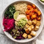 Store any leftover components or assembled bowls in an airtight container in the refrigerator for up to 4 days. Reheat in the oven or microwave until warmed through. For best texture, reheat the tofu separately to keep it crispy.