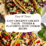 Keywords: Crockpot chicken tacos, slow cooker tacos, shredded chicken tacos, easy taco recipe, Mexican chicken tacos