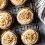 Store these cookies in an airtight container in the refrigerator for up to 5 days to keep the cream cheese frosting fresh. Before serving, allow cookies to come to room temperature for the best texture. You can freeze unfrosted cookies for up to 3 months; thaw fully before frosting.