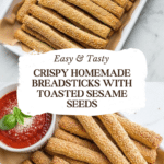 These Crunchy Breadsticks are a perfect savory snack made with a simple dough enriched with toasted white sesame seeds and a hint of red pepper flakes for a gentle kick. Rolled into thin 12-inch ropes and baked to golden perfection, they offer a delightful crunch that pairs beautifully with dips or soups. With just a handful of ingredients and straightforward preparation, these breadsticks make an ideal appetizer or accompaniment to any meal.