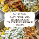 This Dump-and-Bake Chicken Tzatziki Casserole brings the vibrant flavors of the Mediterranean right to your dinner table with minimal effort. Tender chicken, creamy tzatziki sauce, and perfectly cooked rice combine into a wholesome and satisfying meal perfect for busy weeknights or entertaining guests.