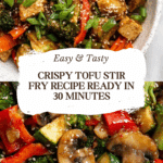 Keywords: crispy tofu stir fry, vegan stir fry, easy tofu recipe, quick dinner, plant-based dinner, healthy stir fry, tofu and vegetables
