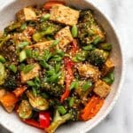 This Easy 30 Minute Crispy Tofu Stir Fry is a vibrant, flavorful plant-based dish featuring perfectly crispy tofu combined with a colorful mix of fresh vegetables sautéed in a savory ginger-soy sauce. Quick to prepare and ideal for a wholesome weeknight meal, it offers a delightful balance of textures and tastes, enhanced with optional spicy sambal oelek and topped with crunchy sesame seeds, scallions, and toasted cashews for added depth.