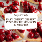 This Easy Cherry Dessert Pizza offers a delightful twist on traditional pizza by combining a buttery sugar cookie crust with a creamy cream cheese filling and luscious cherry pie topping. Perfect for a quick and impressive dessert, it’s simple to prepare and sure to satisfy your sweet tooth.