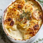 Easy creamy scalloped potatoes are the ultimate comfort dish, perfect for family dinners or special occasions. Thinly sliced Yukon Gold potatoes baked in a rich garlic cream sauce with Parmesan cheese create a luscious and satisfying side.