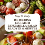 This Easy Cucumber Mozzarella Salad is a refreshing Italian-inspired side dish combining crisp cucumber slices, juicy cherry tomatoes, creamy mozzarella balls, ripe avocado, and fresh basil in a light herb dressing made with olive oil, balsamic vinegar, garlic, salt, and pepper. Perfect for quick preparation with no cooking required, it offers a healthy, flavorful, and vibrant salad ideal for summer gatherings, weeknight dinners, or light meals.