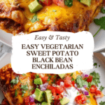 These Easy Vegetarian Sweet Potato Black Bean Enchiladas are a hearty, flavorful Mexican-inspired dish featuring roasted sweet potatoes, black beans, warming spices, and gooey melted cheese all rolled in soft tortillas and baked to perfection. Perfect for a comforting weeknight meal that’s both nutritious and satisfying, with optional vegan adaptations and fresh toppings to customize.