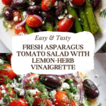 This Fresh Asparagus Tomato Salad with Lemon-Herb Vinaigrette is a bright and vibrant dish perfect for spring and summer. Crisp asparagus and juicy tomatoes are complemented by a tangy, homemade dressing and creamy feta cheese, making it a refreshing side or light meal.