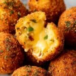 - Shape and freeze: Scoop portions of the cheese mixture and form them into bite-sized balls. Place the balls on a parchment-lined baking sheet and freeze for 30 minutes to firm up the filling, which helps maintain their shape during frying.