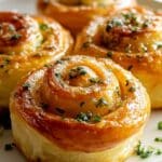 Garlic Swirl Rolls are a soft, fluffy bread infused with the rich aroma of garlic and fresh herbs. Perfect as a side dish, appetizer, or snack, these rolls bring a comforting and flavorful touch to any meal. Whether fresh from the oven or warmed later, they’re sure to impress your guests and delight your taste buds.